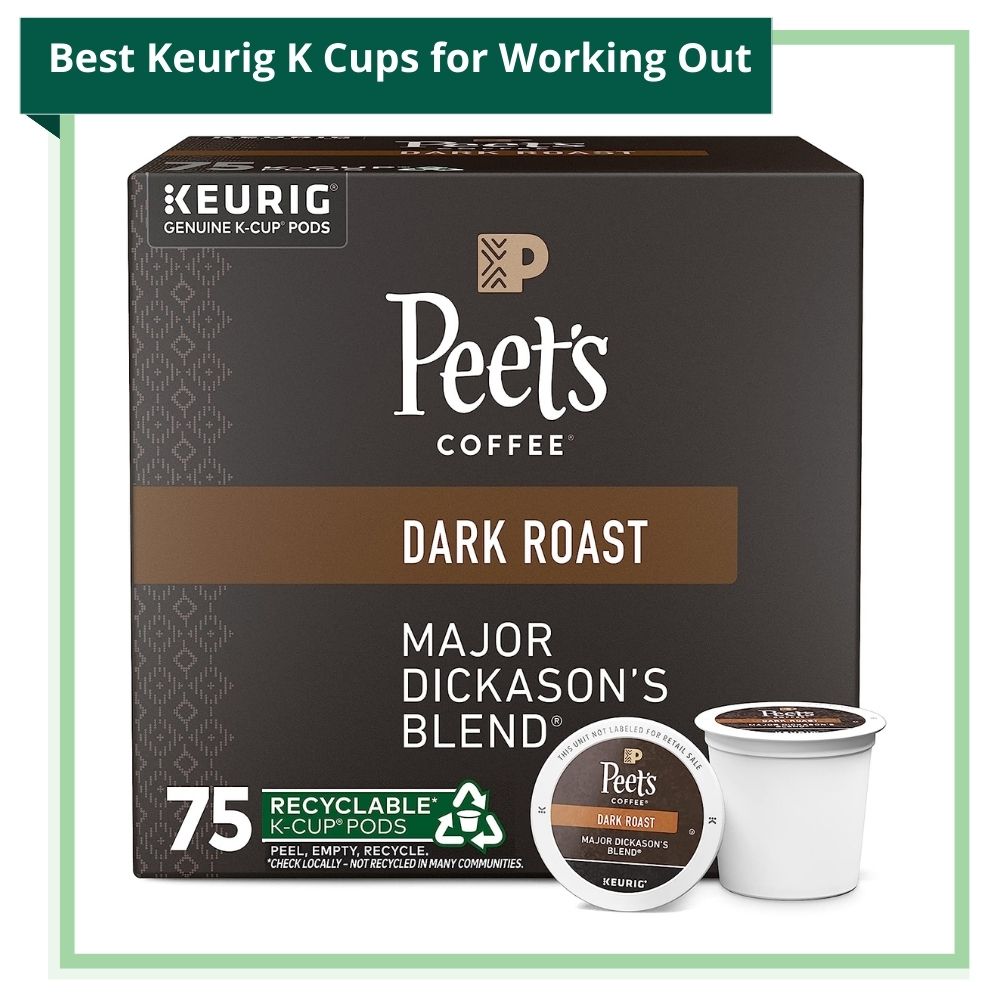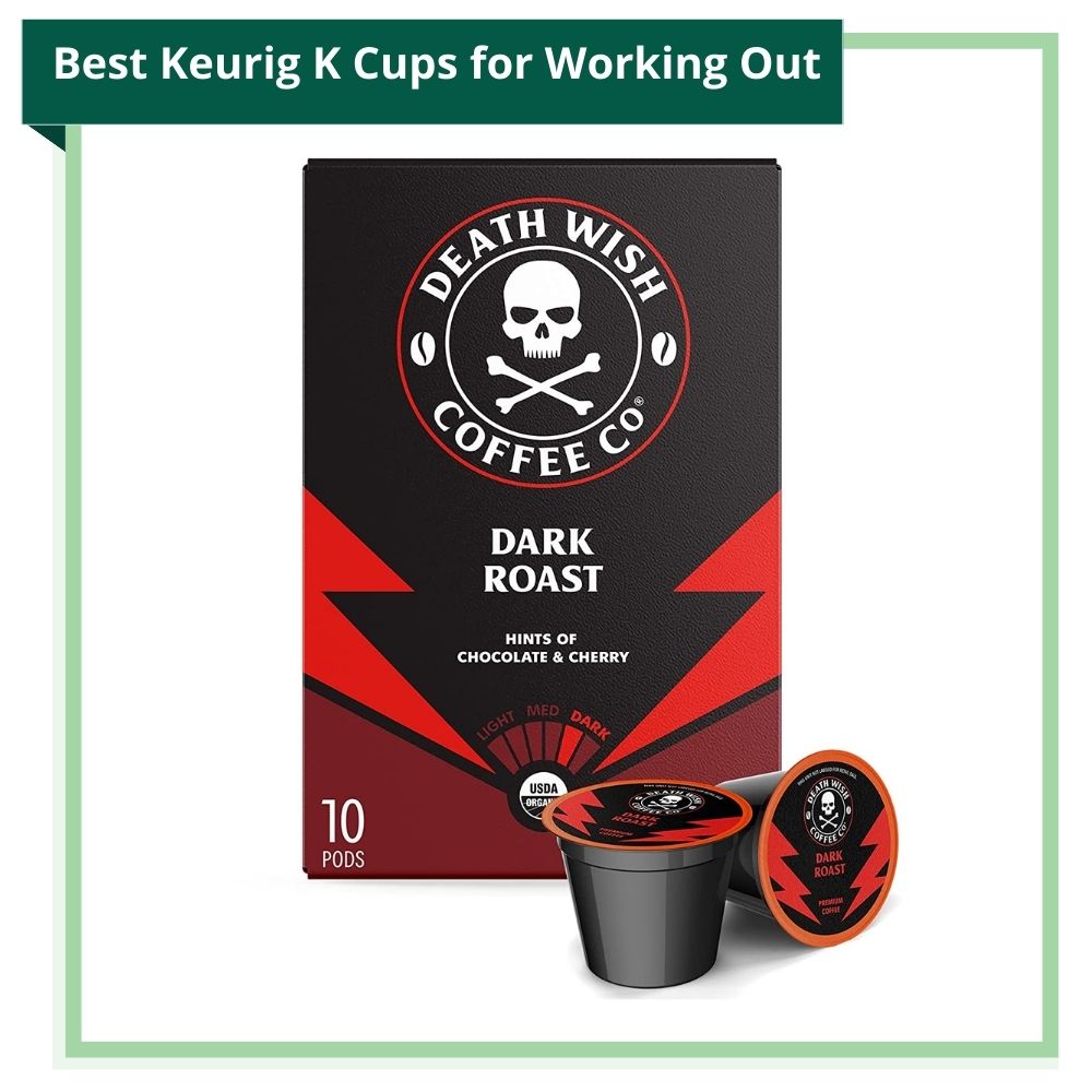 The best K Cup for working out is Death Wish Coffee as it contains over twice the caffiene of others at 300mg. This alighns to the recomended median caffeine intake between .9 and 2.7 milligrams per pound