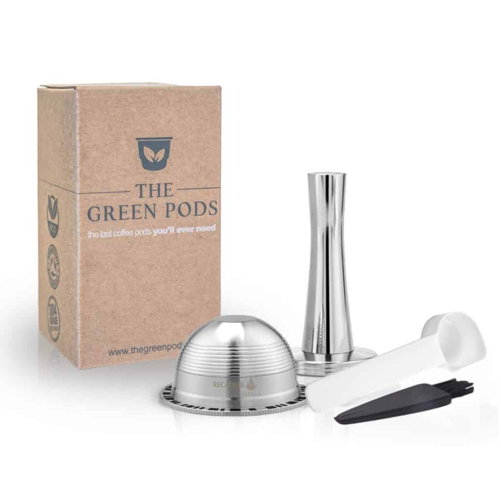 The Green Pods Vertuo Starter Pack is the best reusable Nespresso VertuoLine pod as it’s highly durable, easy to use, and produces some of the best-tasting coffee. The Green Pods tick all these boxes.