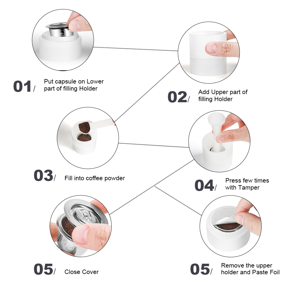 Simply place your reusable Nespresso capsule inside the dosing ring, pour in the coffee and tamp.
